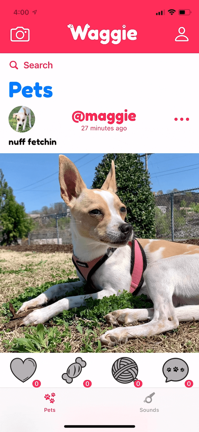 Introducing Waggie, the pet social network. As a place that worships pets, Waggie gives you the tools to share your petβs adventures and discover others. And when you want to make things even more fun, you can use our unique dog and cat stickers, as well as pet sounds (works with Apple Watch too).